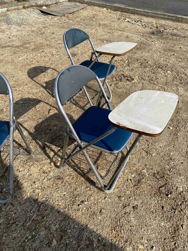 私のお客様の中には最近のブログでご紹介しているように「古くても良いから○○が出て来たら譲って欲しい」とのお声やご予約はたくさん伺っておりますが、机付きのパイプ椅子のお声は頂いてなかったのと欲しい方を見つける自信がなかったので、今回は力及ばす運送費・作業代金を頂く形で有料での回収となってしまいました…