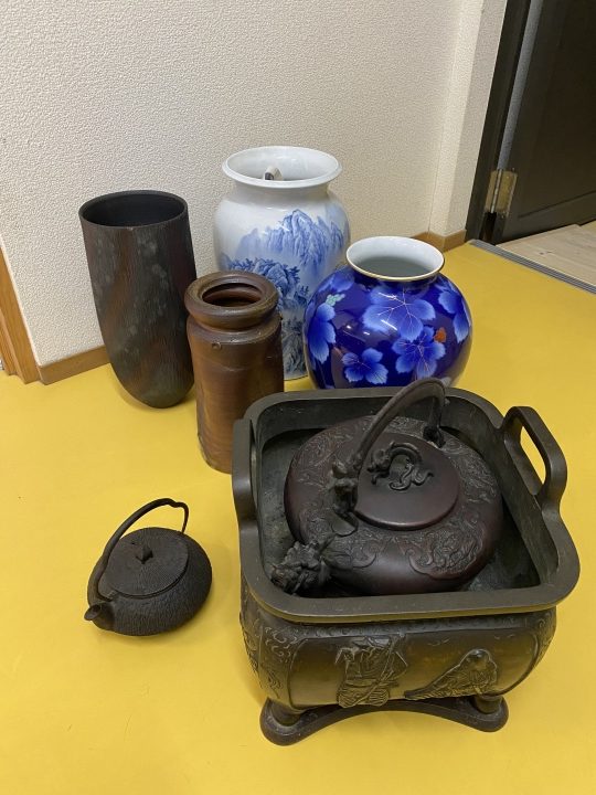 鉄瓶に銅製火鉢に花瓶に飾り壺…