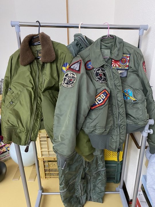 アルファインダストリーズのフライトジャケット、米軍B-15Cフライトジャケットにフライトスーツ。