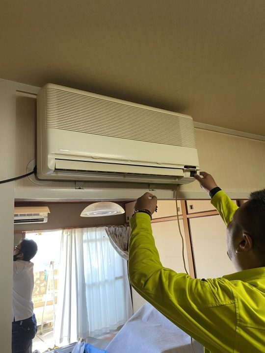まずは古いエアコン2基を外していきます。