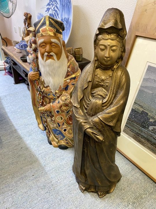 観音立像に九谷焼寿老人