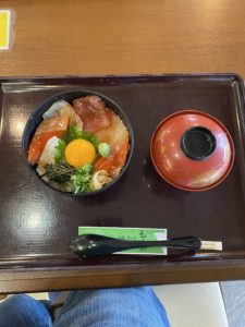 宇和島市での買取は残念ながら私とお客様の金額の折り合いがつかなかったので買取とはなりませんでしたが、帰りにスタッフときさいや広場にて漬け丼と内子町からりでアイスを食べて帰社。