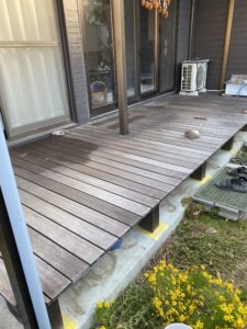 ウッドデッキ塗装・板塀設置からはや5年。何とか持ち堪え今年の春辺りにたまたまお会いした際に…