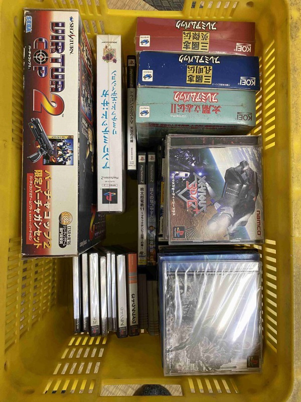 ゲームソフトがメインで、PlayStation、PlayStation2、3、セガサターン、ドリームキャスト、スーパーファミコン144点を1点ずつ丁寧に査定しました。